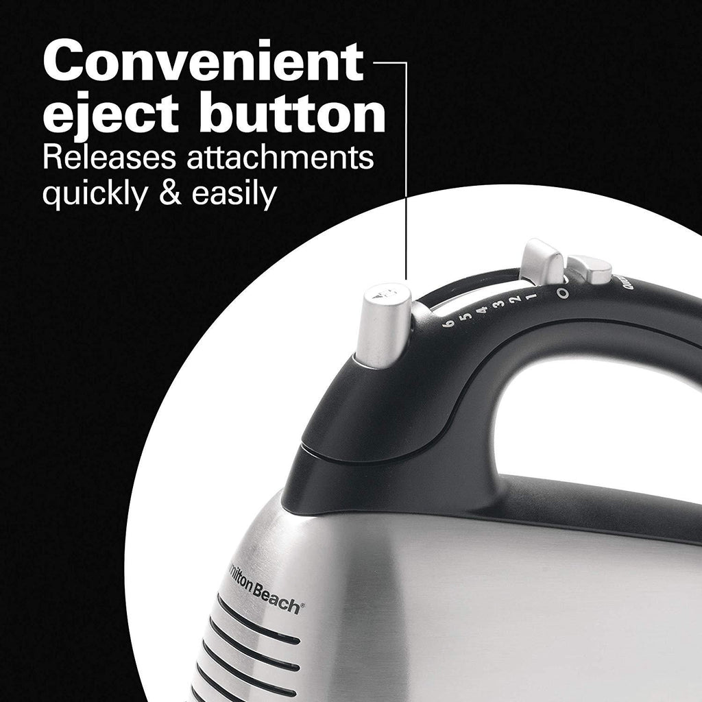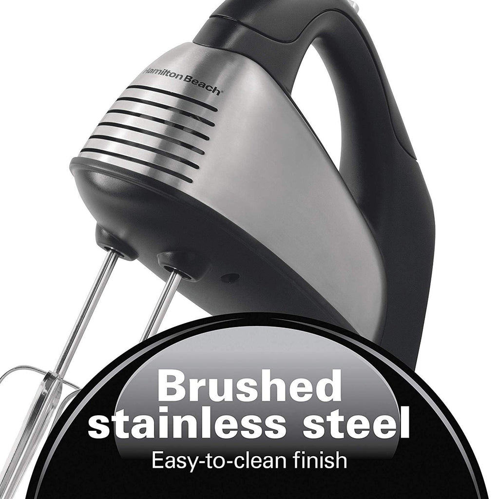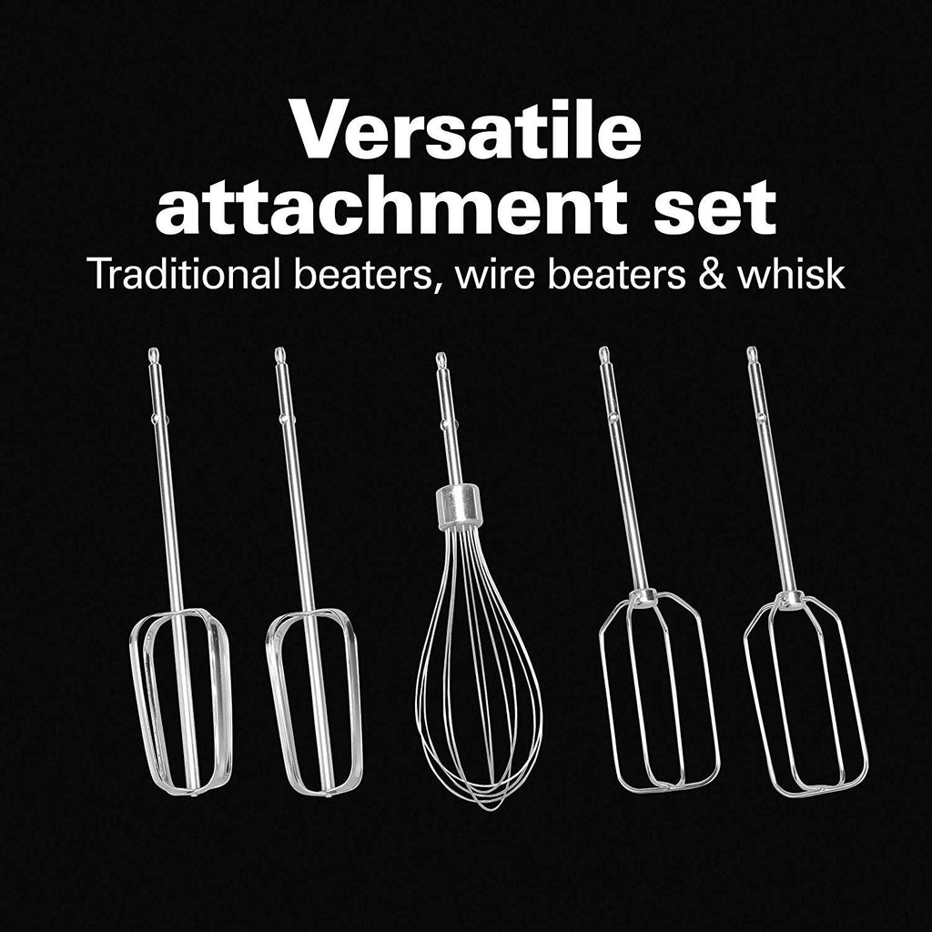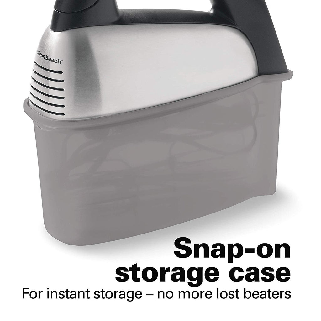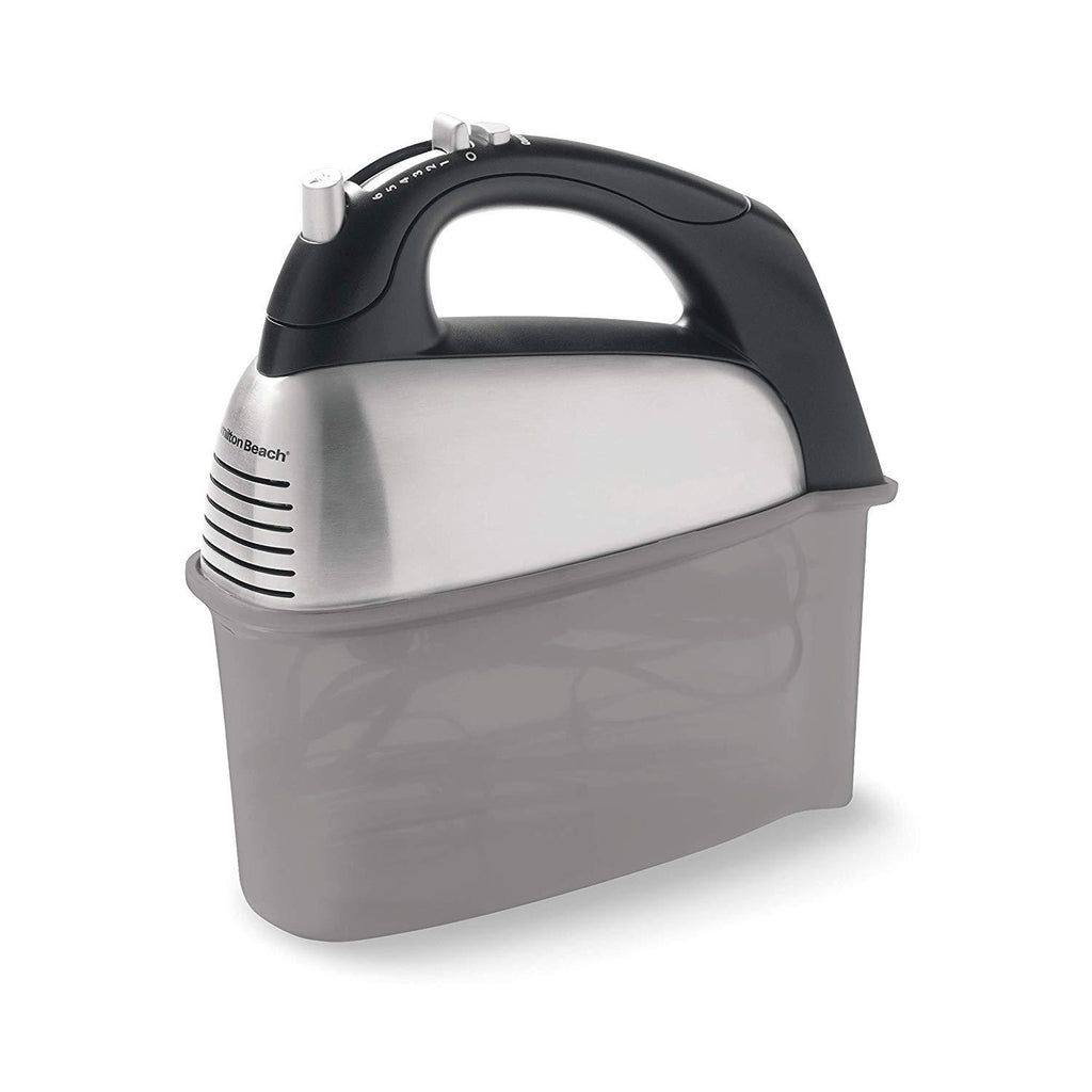 Powerful Hamilton Beach Hand Mixers focus on ergonomics and versatility. Handles are built with a comfortable grip in mind. Convenient snap-on storage cases keep attachments and cords together so you don't have to search for them each time. A variety of attachments are available with different hand mixers, from traditional beaters to wire beaters, whisks, dough hooks and milkshake attachments.