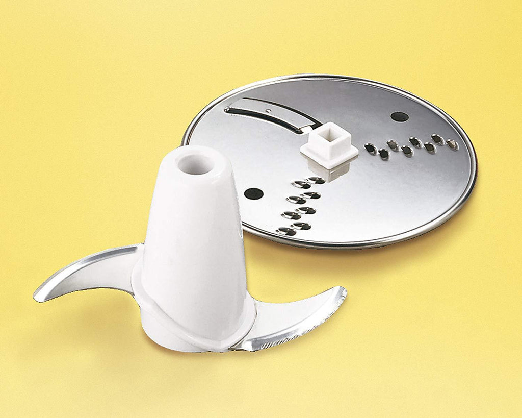 • Stainless steel chopping/mixing blade & reversible slicing/shredding disc