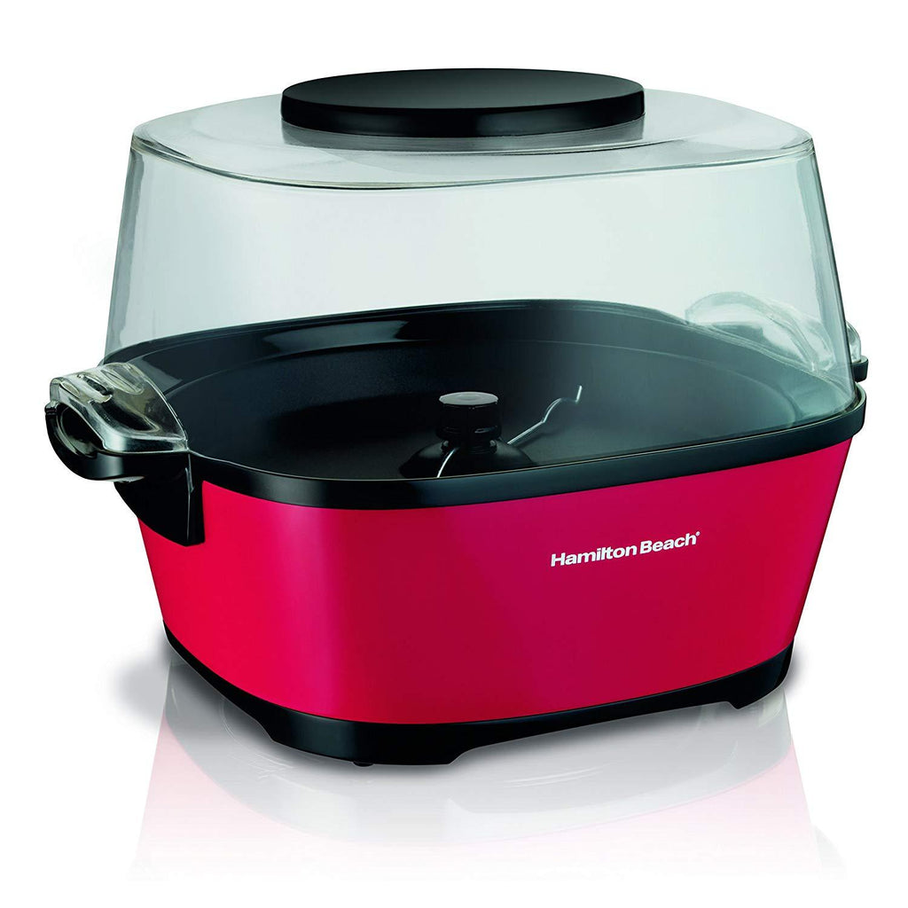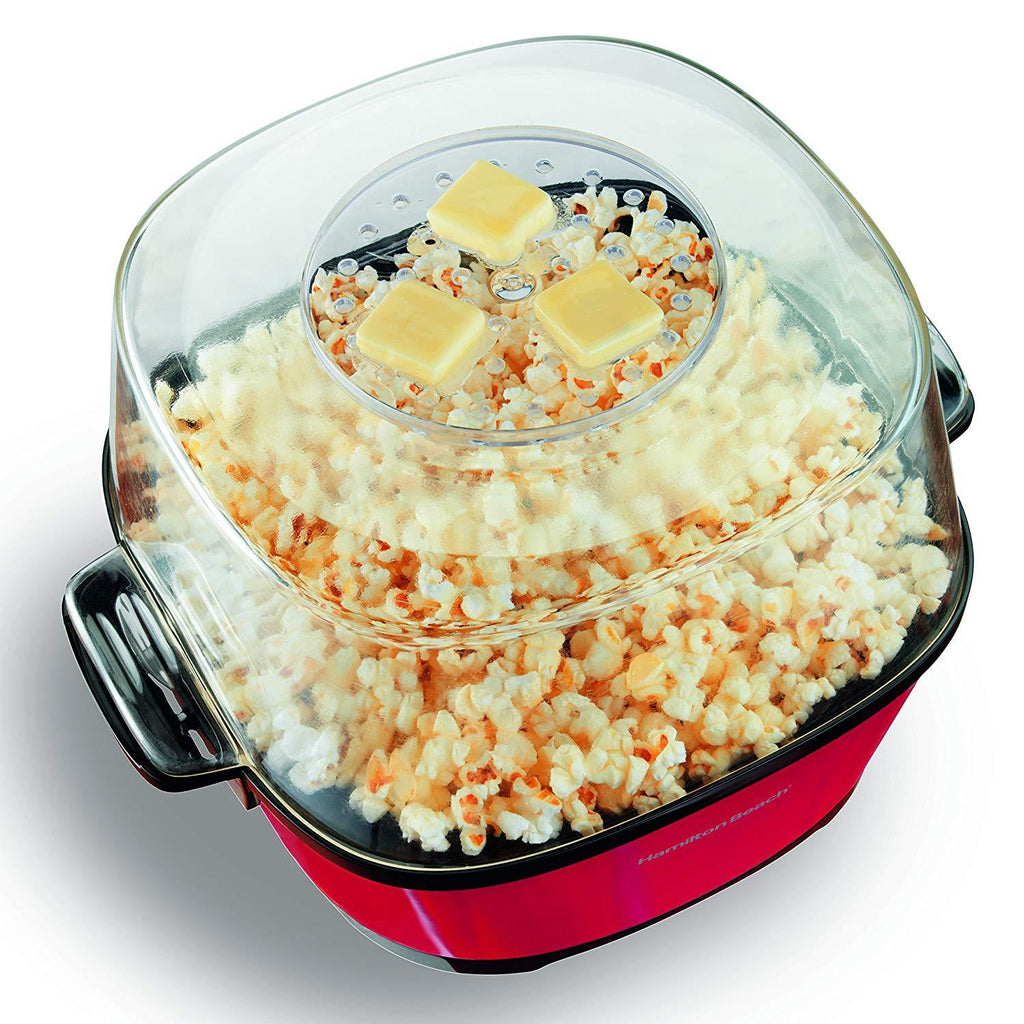 Make a favorite movie theater treat at home in just minutes. The Hamilton Beach Hot Oil Popcorn Popper is easy to use. Simply add kernels and your choice of oil, plug it in and let the fun begin. Everyone can have their own bowl of popcorn as this popper makes up to 24 cups per batch, and the popper lid inverts to become the serving bowl. Customize the flavor by adjusting the seasonings to your liking. The built in butter well lets you melt butter into the freshly popped kernels while popping, or you can have it plain for a healthy snack.