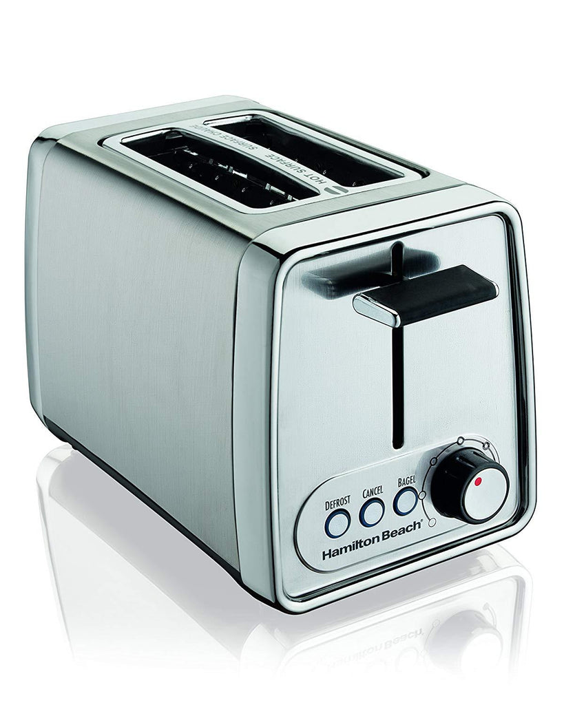 A kitchen essential, Hamilton Beach Toasters are attractively designed, compact and reliable. In addition, some toasters offer a defrost setting that defrosts and toasts in a single step or a bagel setting that toasts the cut side and warms the round side.