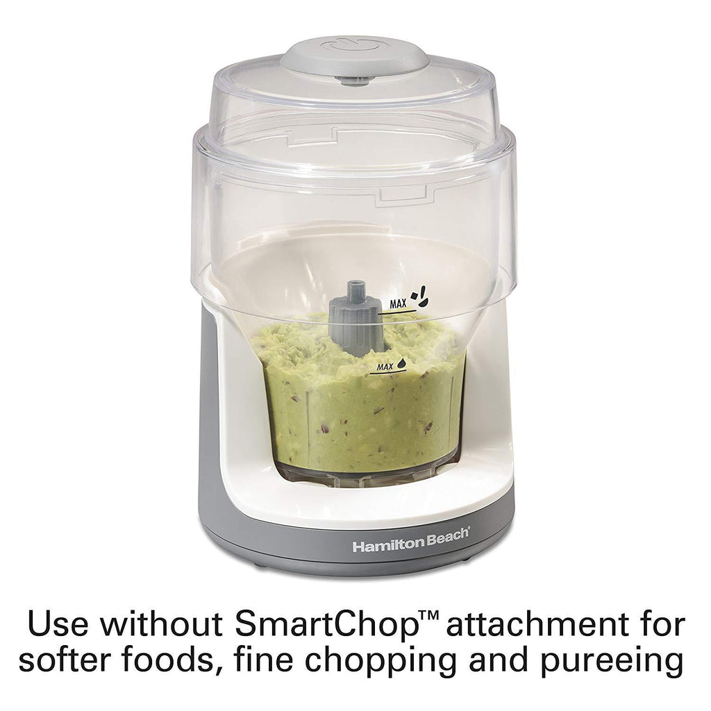 Overprocessing foods with a food chopper is one of the quickest ways to ruin a recipe. Achieve the right consistency for your ingredients every time with the Hamilton Beach SmartChop Chopper. Not only does it speed up food prep by handling the chopping, mincing and mixing for you, but the patented SmartChop attachment releases ingredients down into the bowl when they reach the ideal size, making it next to impossible to overprocess foods.