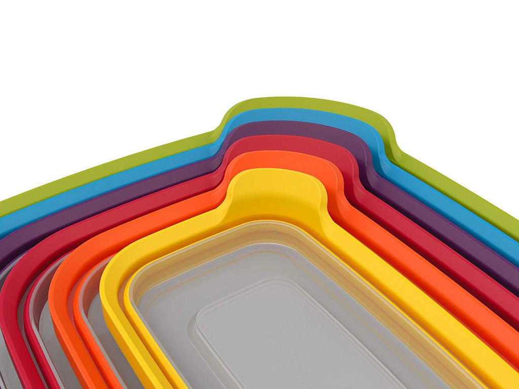 Organize your cupboard with the help of these space-saving storage containers that neatly stack together.